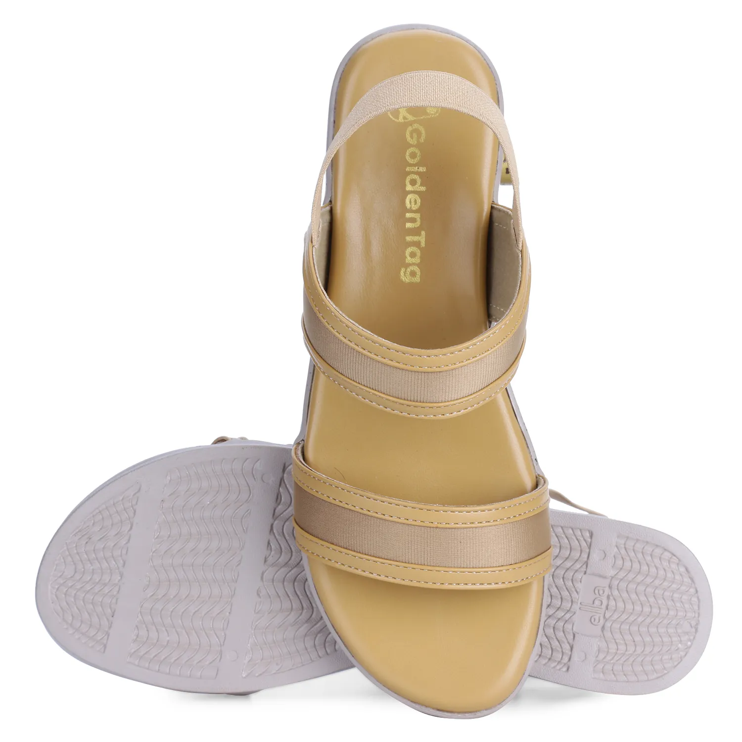 **Distinctive Dual-Tone Design** **Secure Elastic Slingback** **Multi-Strap Comfort Construction** **Versatile Neutral Palette with Pop** **About Golden Tag by Liquitus** |