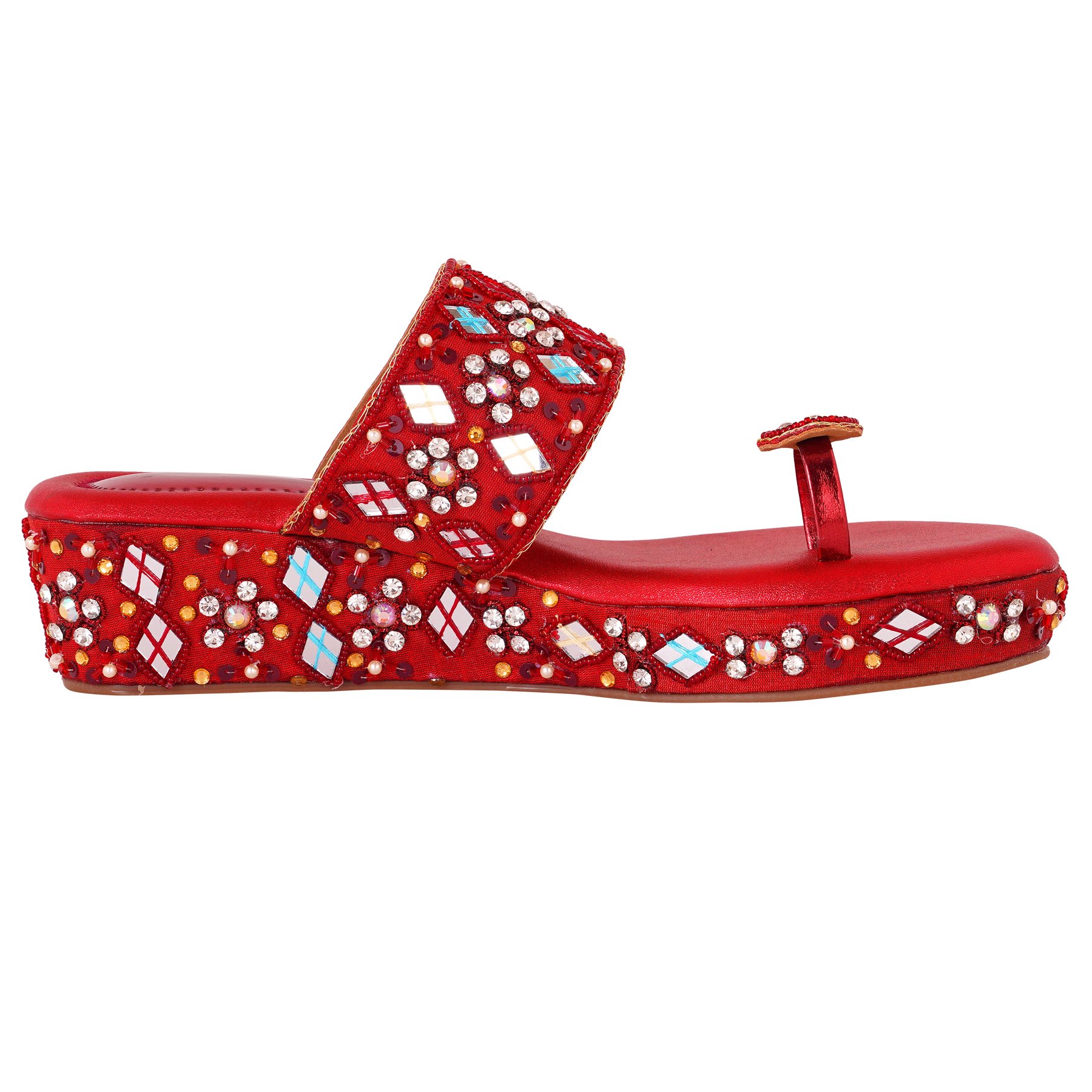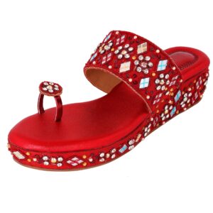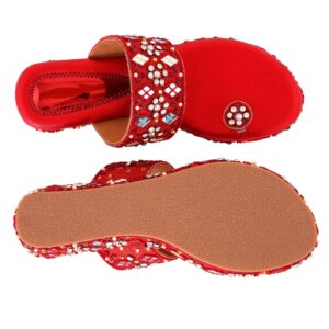 Embrace the rich heritage of handcrafted artistry with The Maharani Jewel sandals, designed to make you feel like royalty on your special day. These stunning maroon sandals are more than just footwear; they’re a statement piece, meticulously crafted to capture the essence of bridal and ethnic glamour.