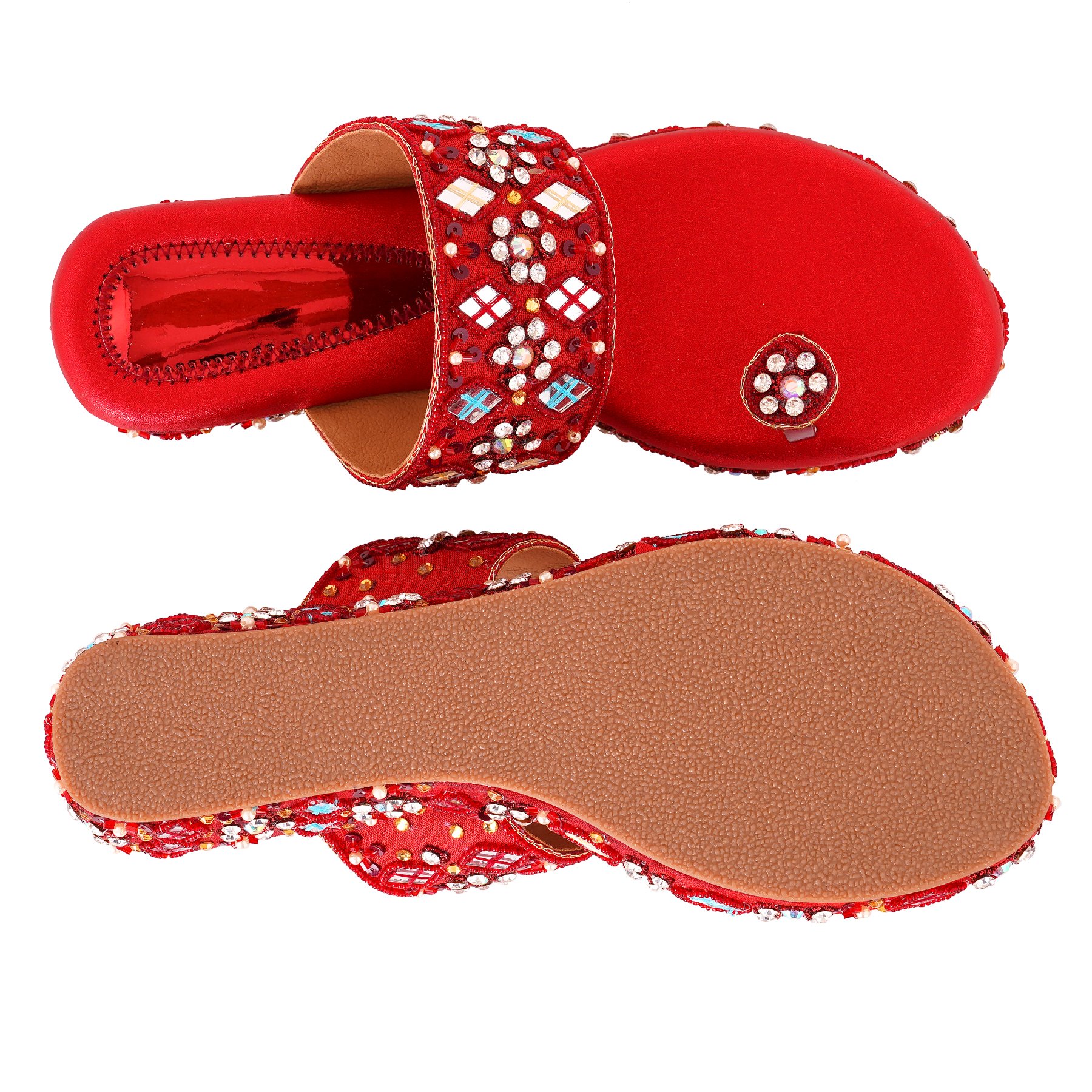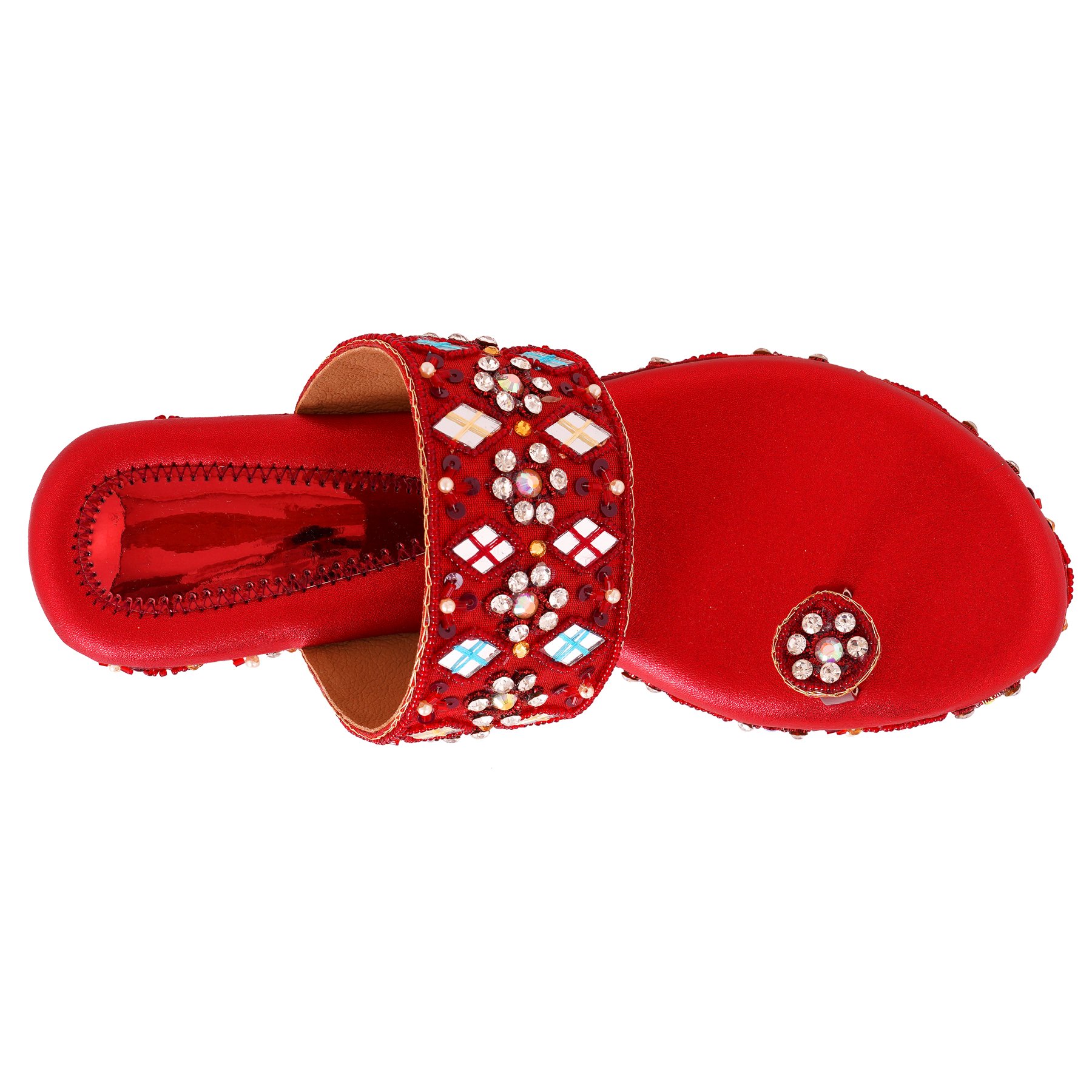 Material: The footwear is crafted with high-quality zari, which includes intricate mirror and beadwork, adding a luxurious touch to the design.