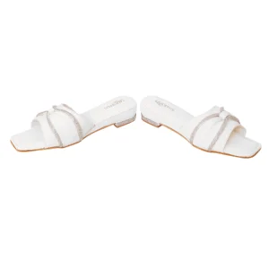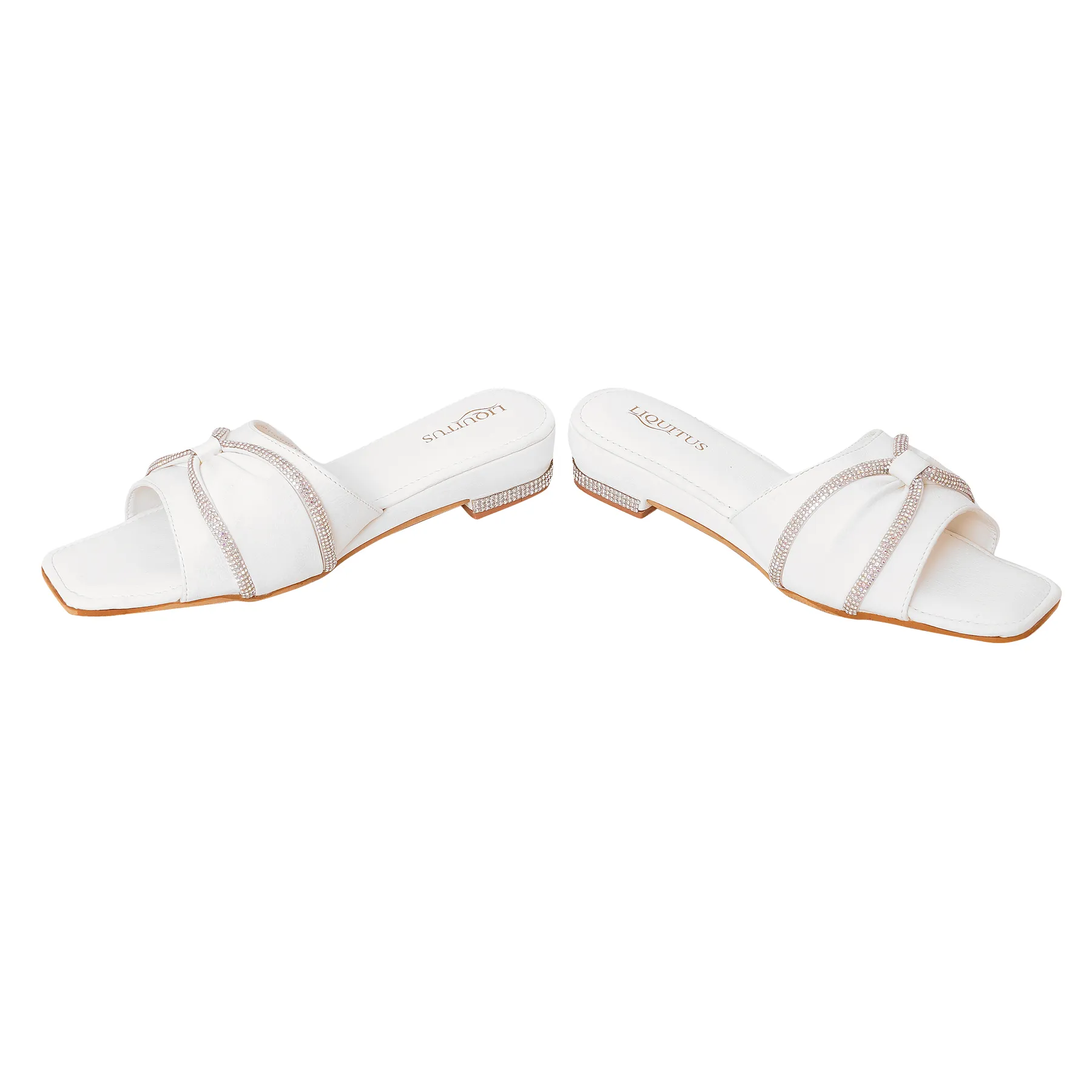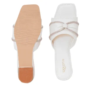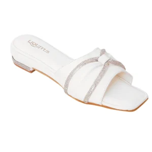 Liquitus Crystal Knot White Twisted Elegance Ivory Knotted Grace Blanc Pure White Bow Slide Sandal