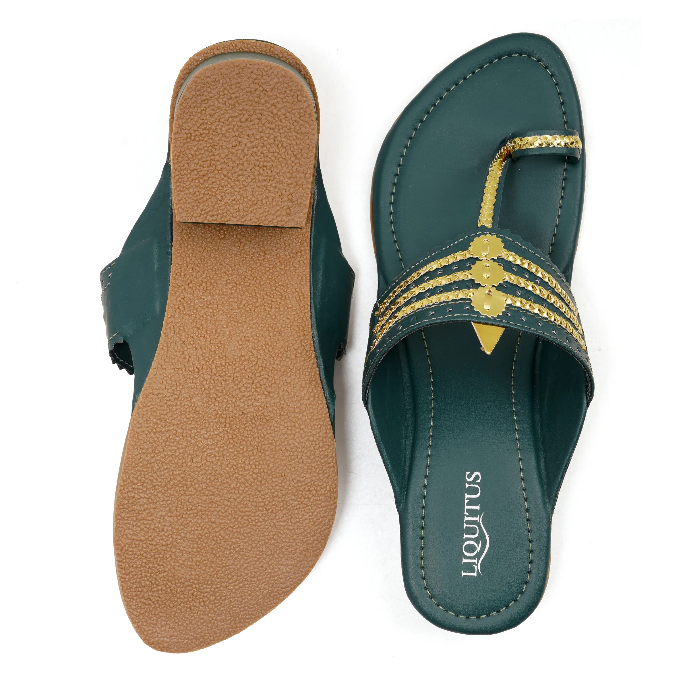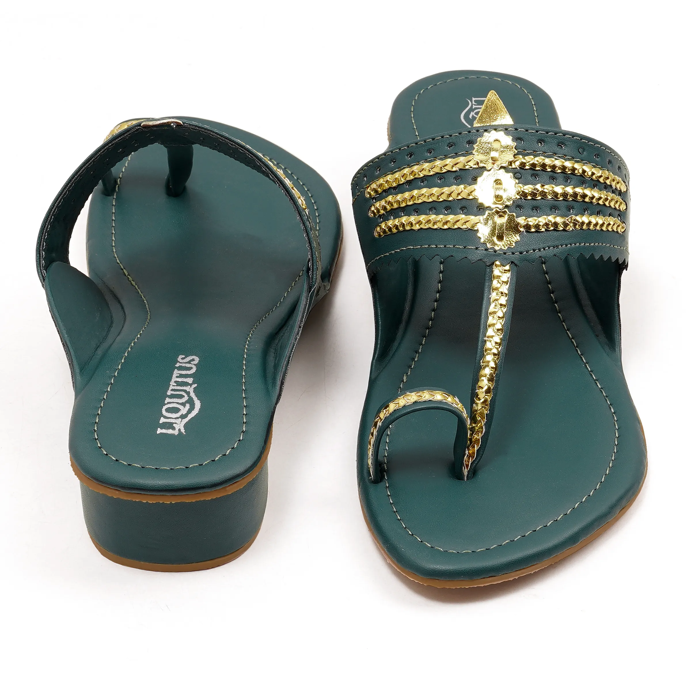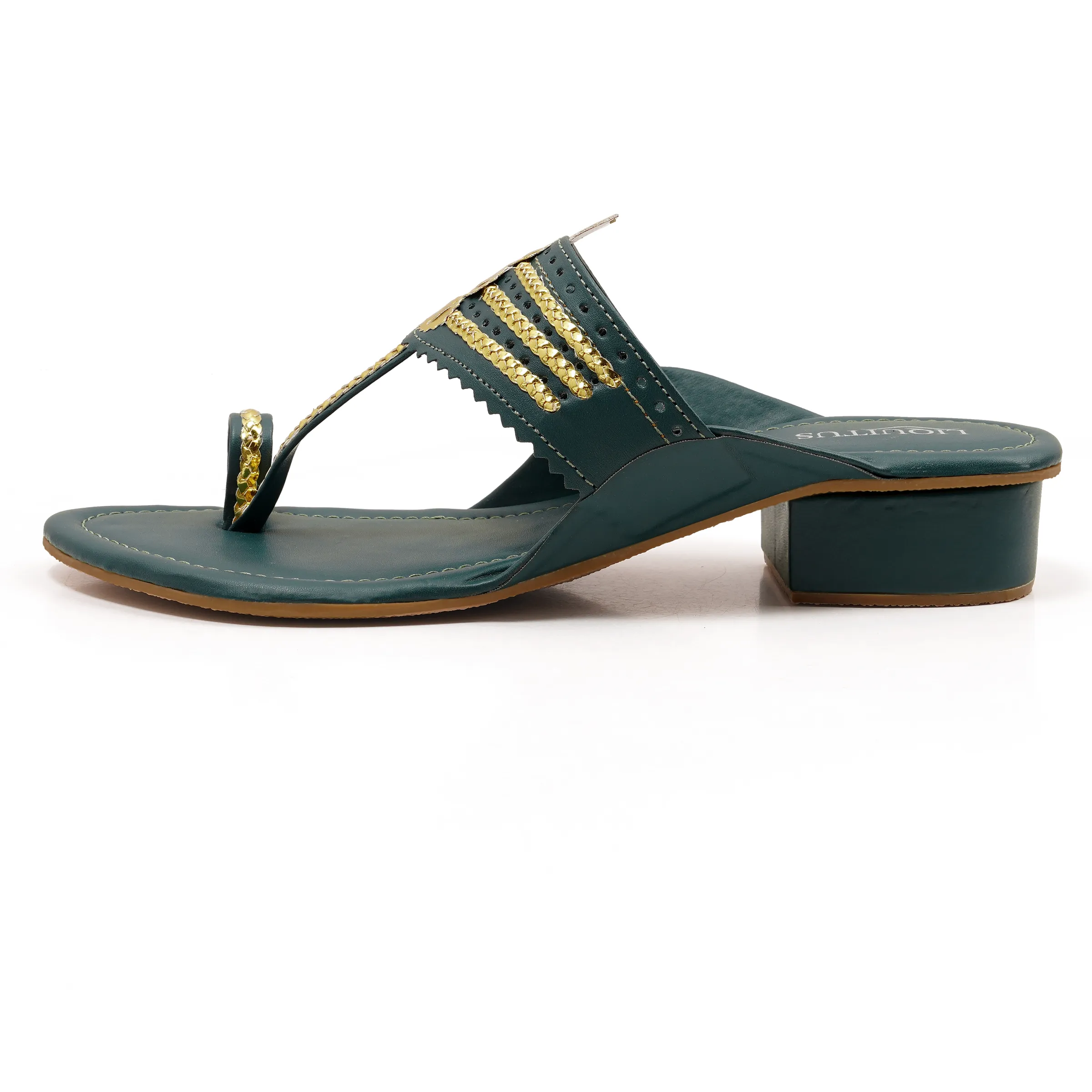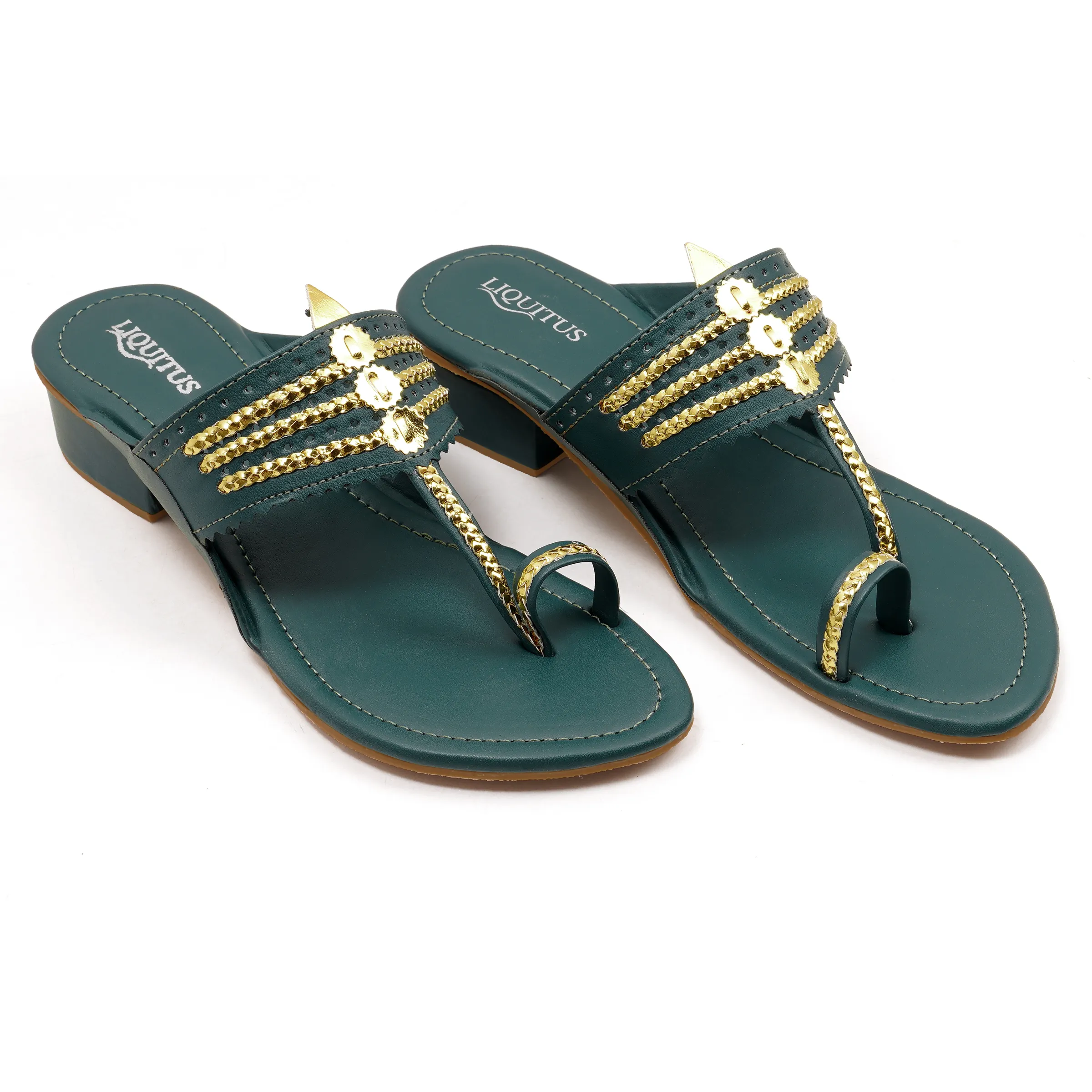Complete your ethnic ensemble with the Liquitus Bottle Green Heeled Kolhapuri Sandals. This stunning shade of deep green is versatile enough to pair with gold-bordered sarees, kurtas, or even denim for a fusion look. We have combined traditional aesthetics with modern engineering to bring you a sandal that is as tough as it is beautiful.
