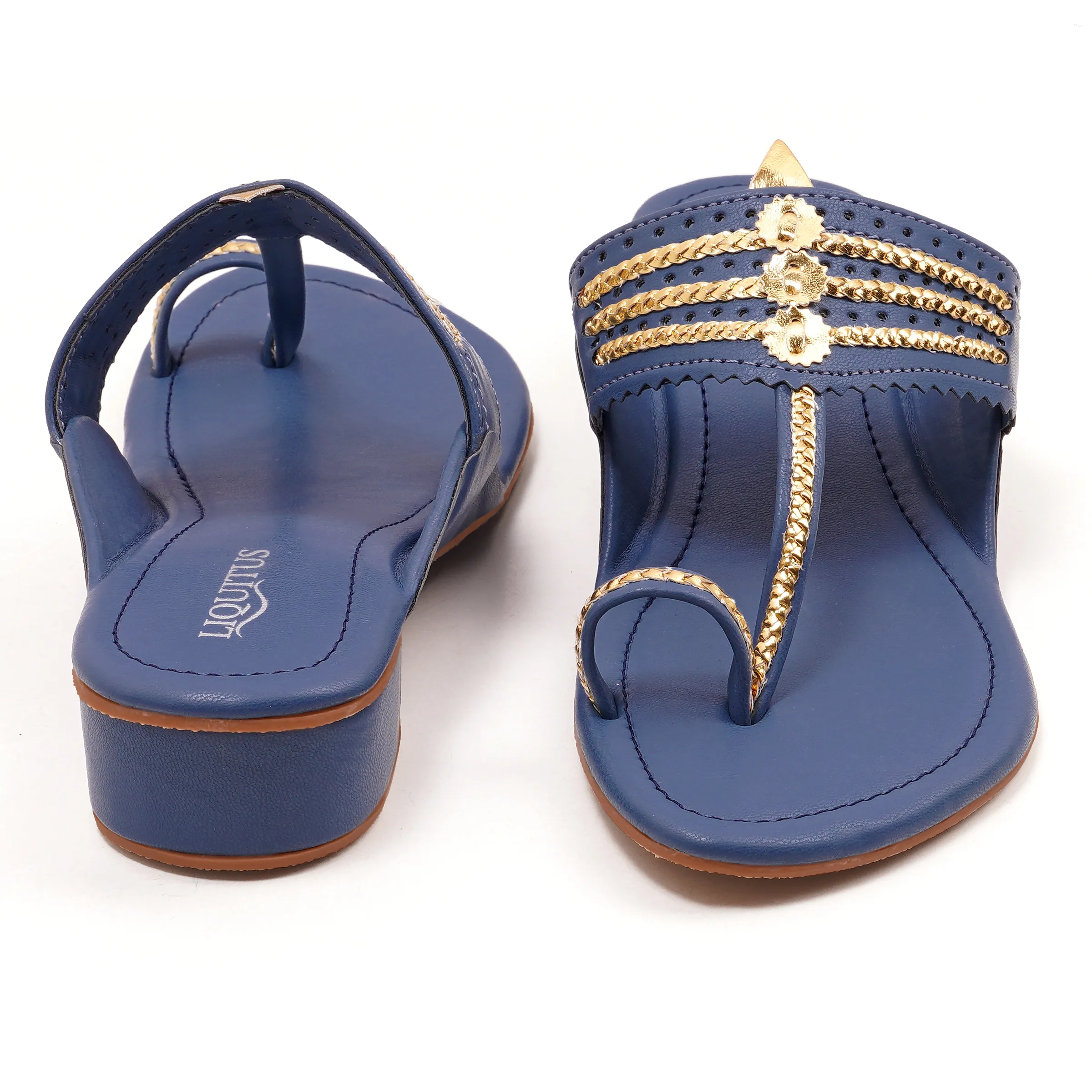 Step into a world where heritage meets modern luxury. The Liquitus Teal Blue Heeled Kolhapuri Sandals are not just shoes; they are a work of art. Designed for the woman who refuses to choose between the elegance of ethnic wear and the longevity of premium footwear.