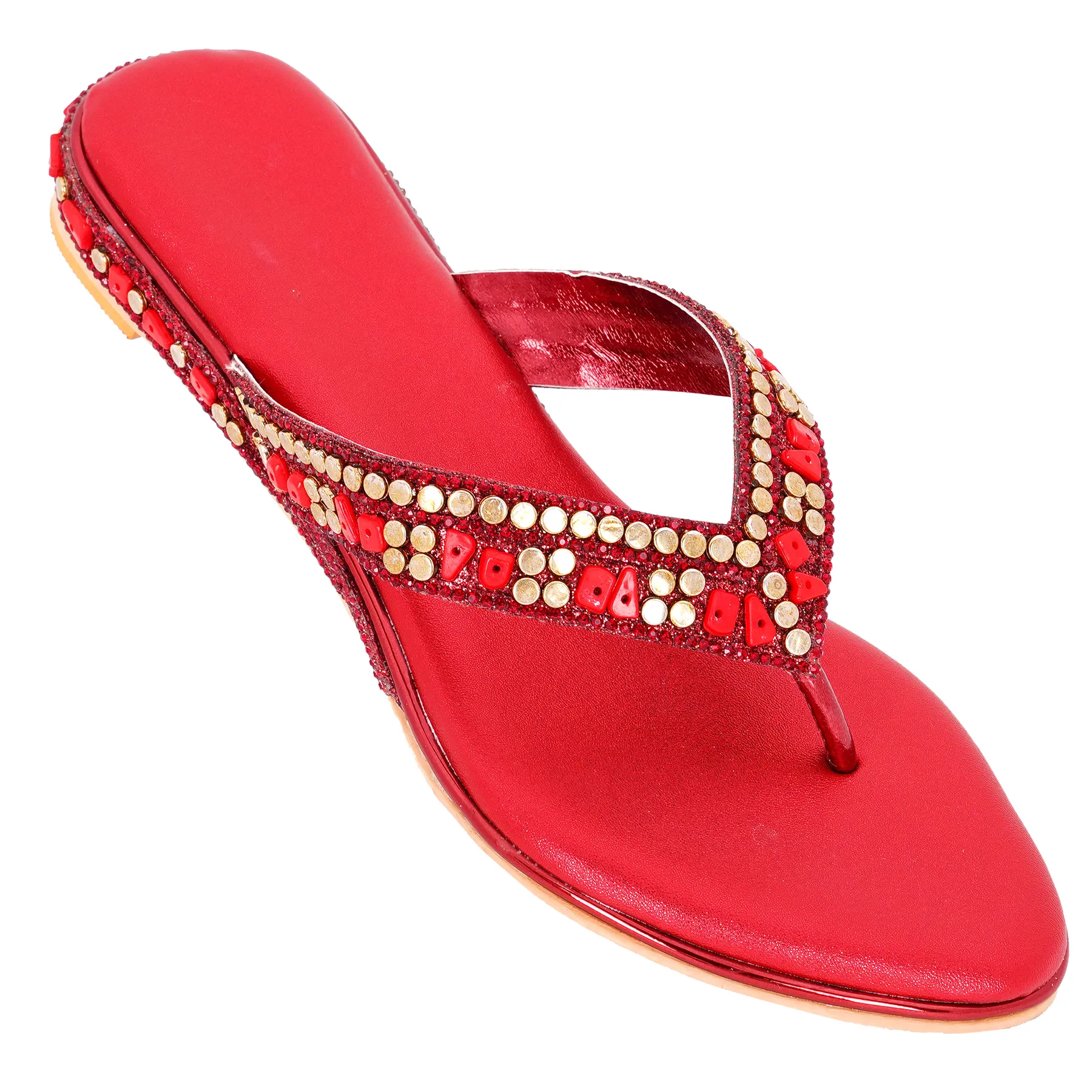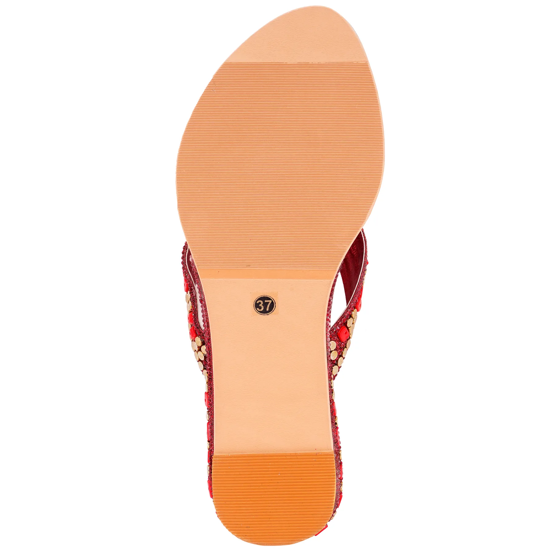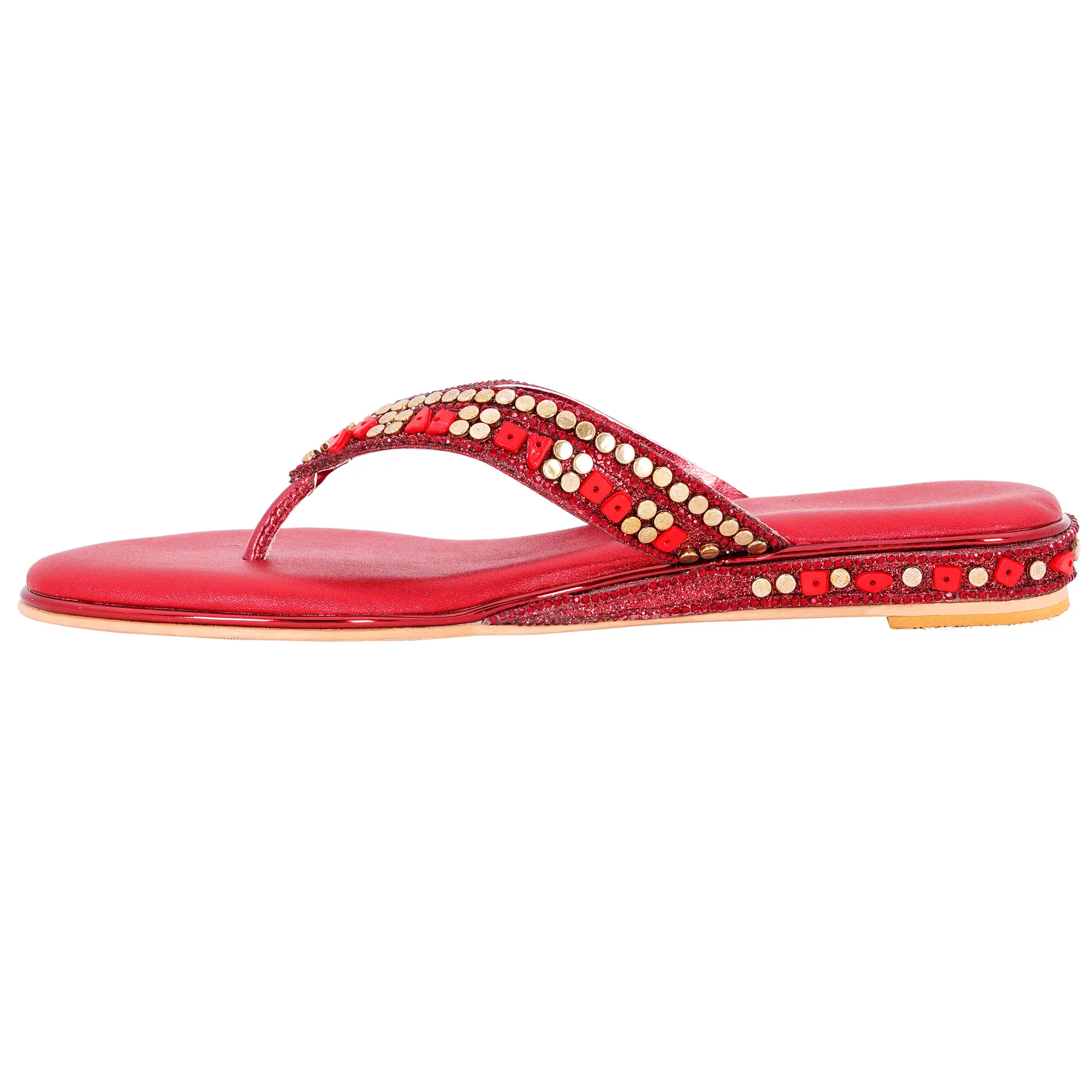 Experience handcrafted elegance and lasting comfort with these embellished flats featuring a durable saro sheet sole, intricate zari work, a 1-inch curved heel for stability and arch support, and a 5mm cushioned EVA insole for all-day wear.